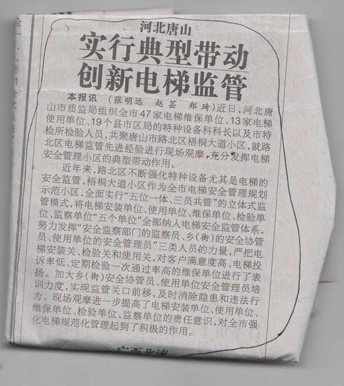 近年來,路北區(qū)不斷強化特種設備尤其是電梯的安全監(jiān)管,梧桐大道小區(qū)作為全市電梯安全管理規(guī)劃示範小區(qū),全面實行“五位一體、三員共管”的立體式監(jiān)管模式,將電梯安裝單位、使用單位、維保單位、檢驗單位、監(jiān)察單位“五個單位”全部納入電梯安全監(jiān)管體系,努力發(fā)揮“安全監(jiān)察部門的監(jiān)察員、鄉(xiāng)(街)的安全協管員、使用單位的安全管理員”三類人員的力量,嚴把電梯安裝關、檢驗關和使用關,對客戶滿意度高、電梯投訴率低、定期檢驗一次通過率高的維保單位進行了表揚。加大鄉(xiāng)(街)安全協管員、使用單位安全管理員培訓力度,實現監(jiān)管關口前移,及時消除隱患和違法行為,F場觀摩進一步提高了電梯安裝單位、使用單位、維保單位、檢驗單位、監(jiān)察單位的責任意識,對全市強化電梯規(guī)範化管理起到了積極的作用。
